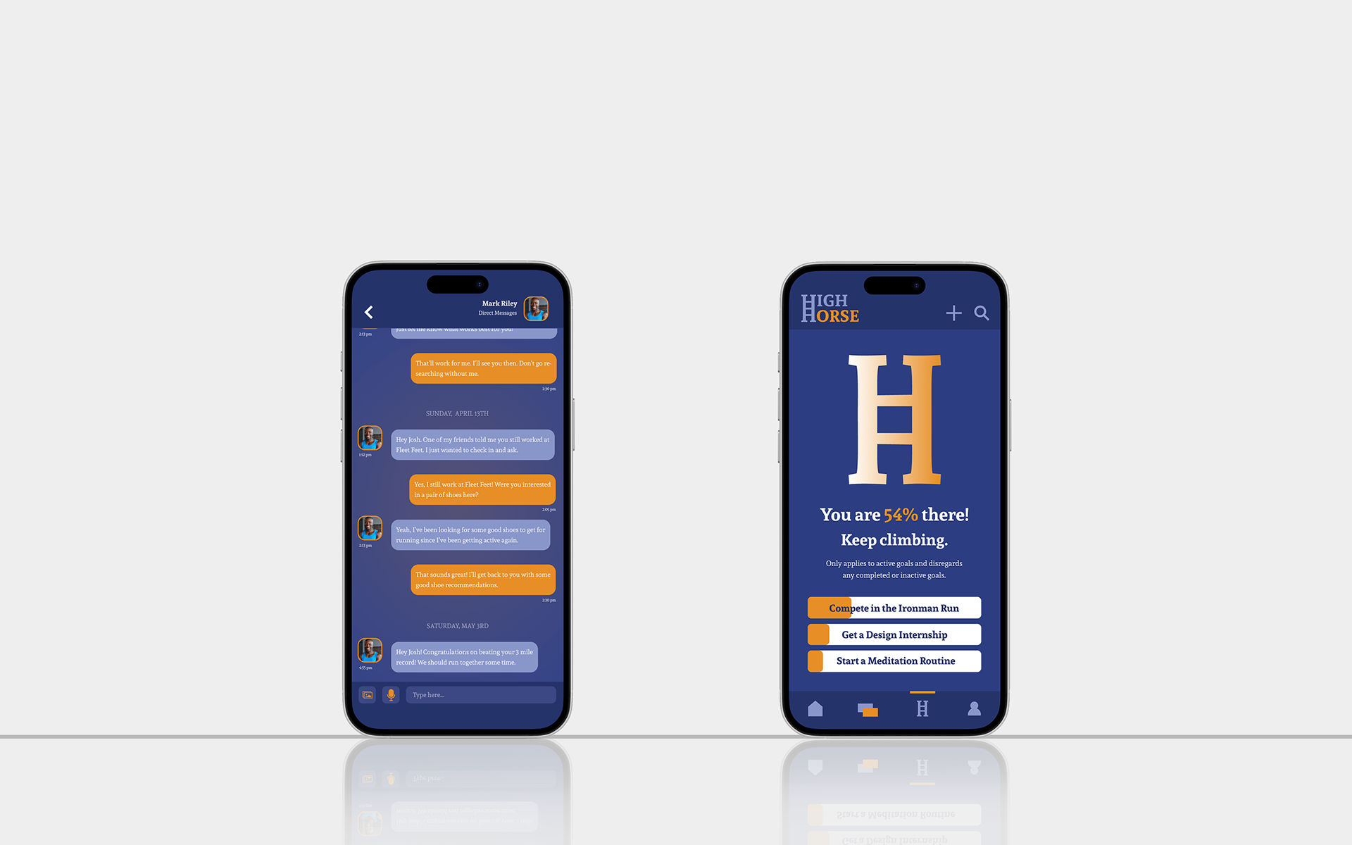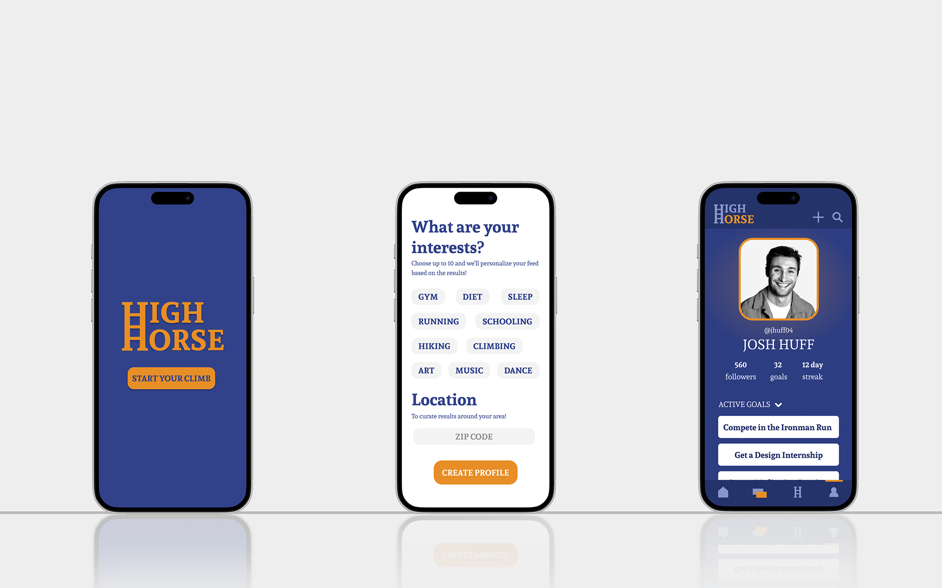ABOUT High Horse is a lifestyle and productivity app and brand designed for ambitious dreamers seeking a guide to push them toward long-term goals. The objective was to build a soft, dynamic brand that encourages healthy habits and optimizes success, meeting users where they are on social feeds and inspirational digital platforms.