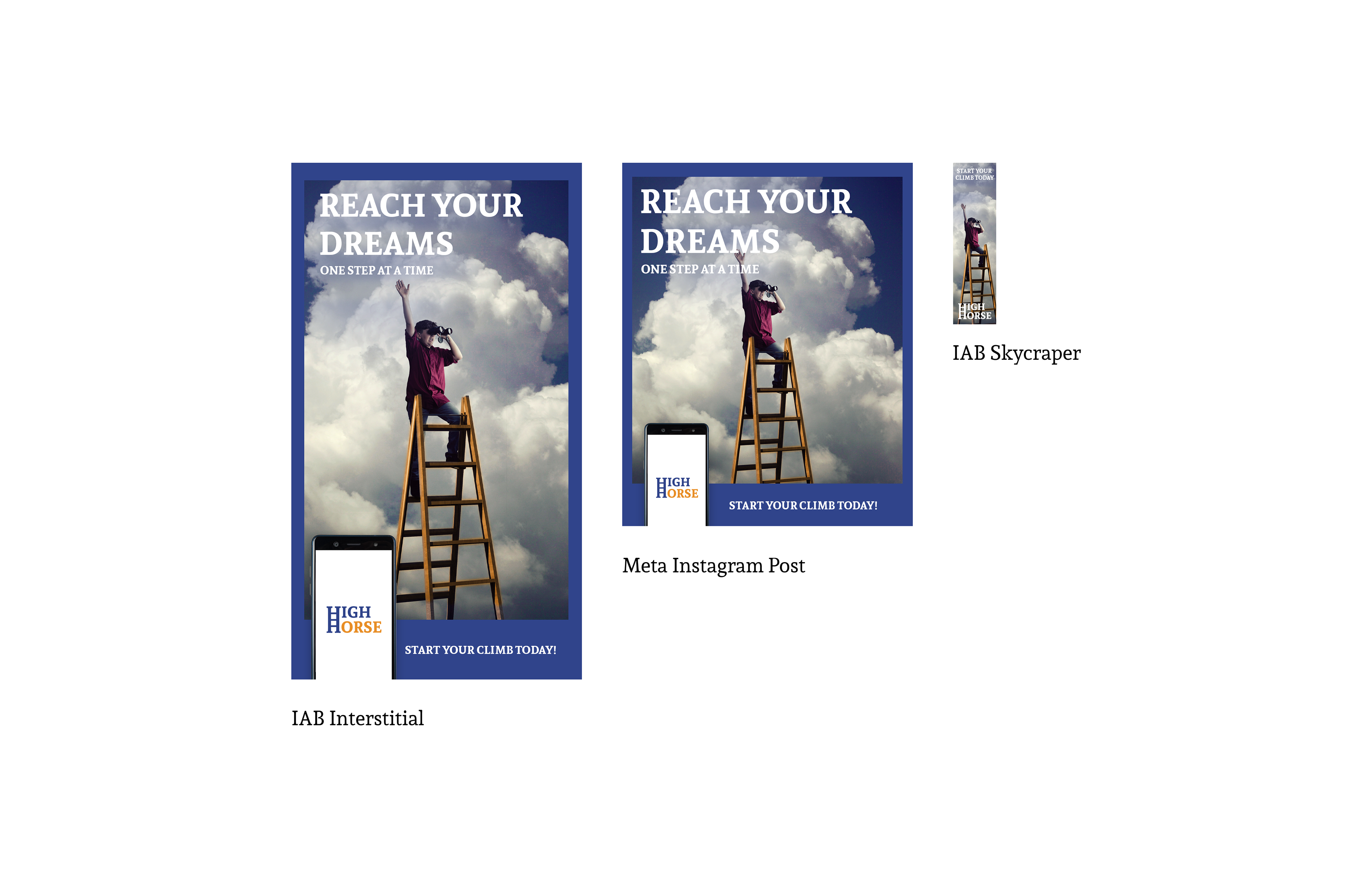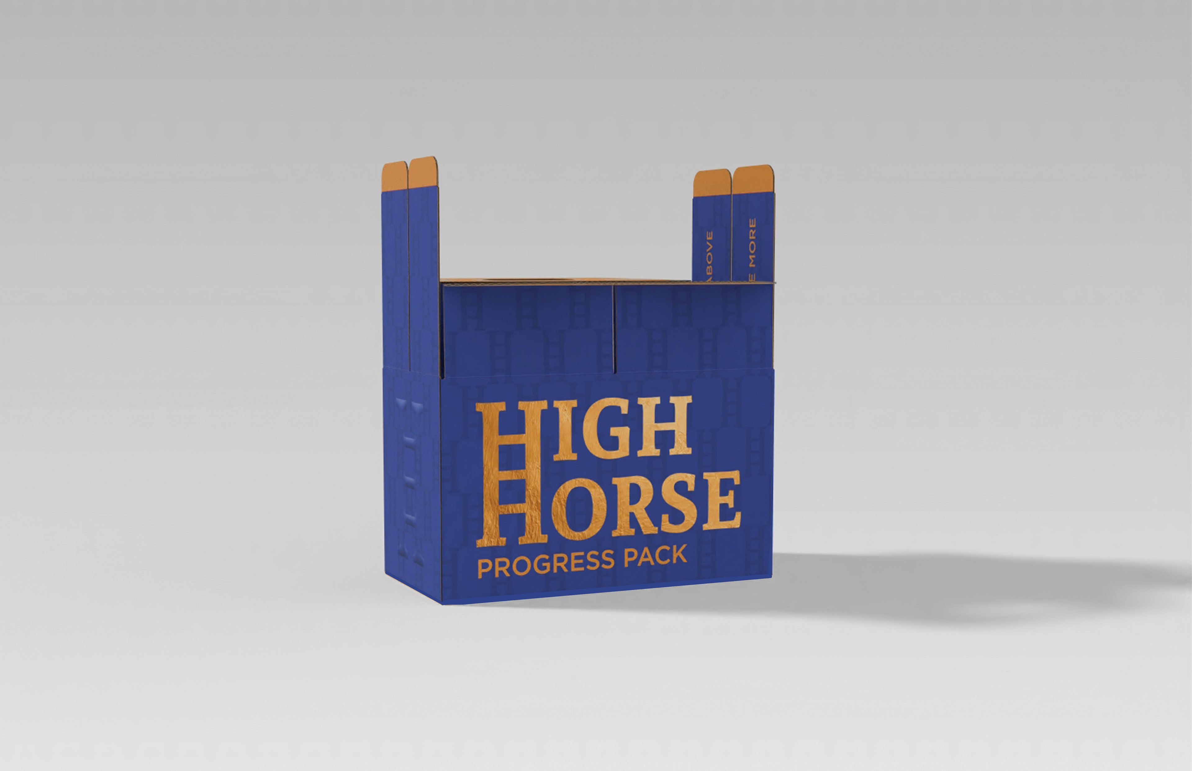 PRINTING APPLICATIONS The High Horse app was designed alongside print and digital applications. A set of ads were made for digital social media posts, skyscraper applications, and more. With this also brought a packaging combination, allowing users to receive rewards in person with the built in progress pack system that paired with the app's statistics.