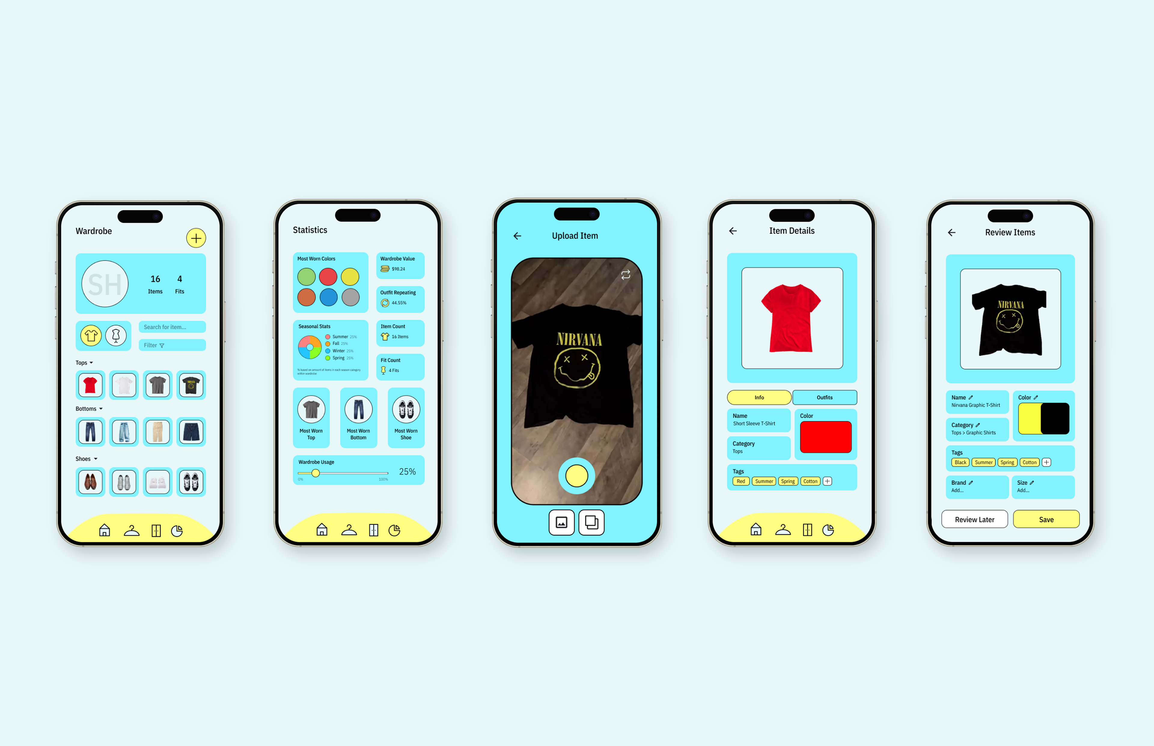 DESIGN Stylet uses structured layouts, bold visual moments, and intuitive filtering tools to guide users from browsing their wardrobe to building complete outfits. With it's vibrant and expressive appearance, it encourages users to embrace experimentality with their fashion sense. Subtle micro-interactions and playful transitions reinforce a sense of progress and discovery throughout the app. The result is a practical yet expressive tool that encourages confidence, creativity, and consistency in daily style choices.