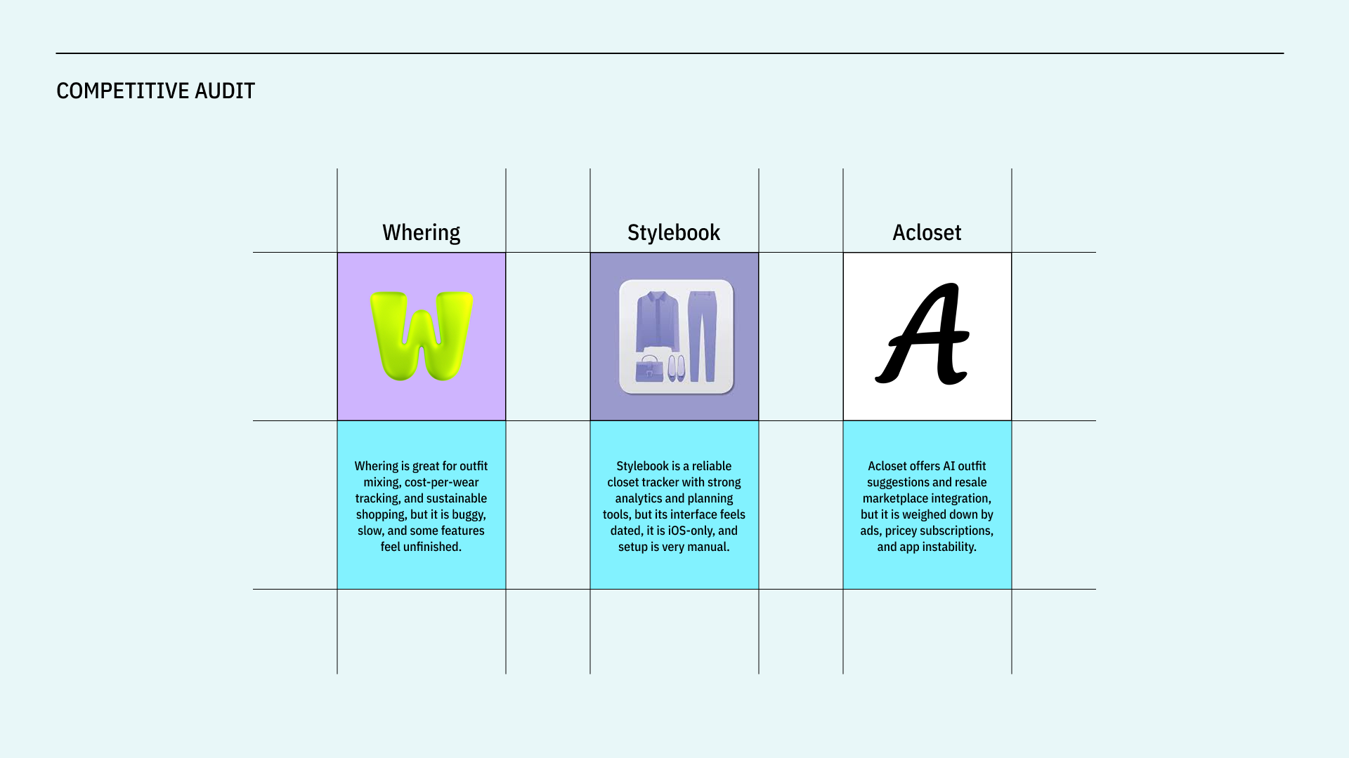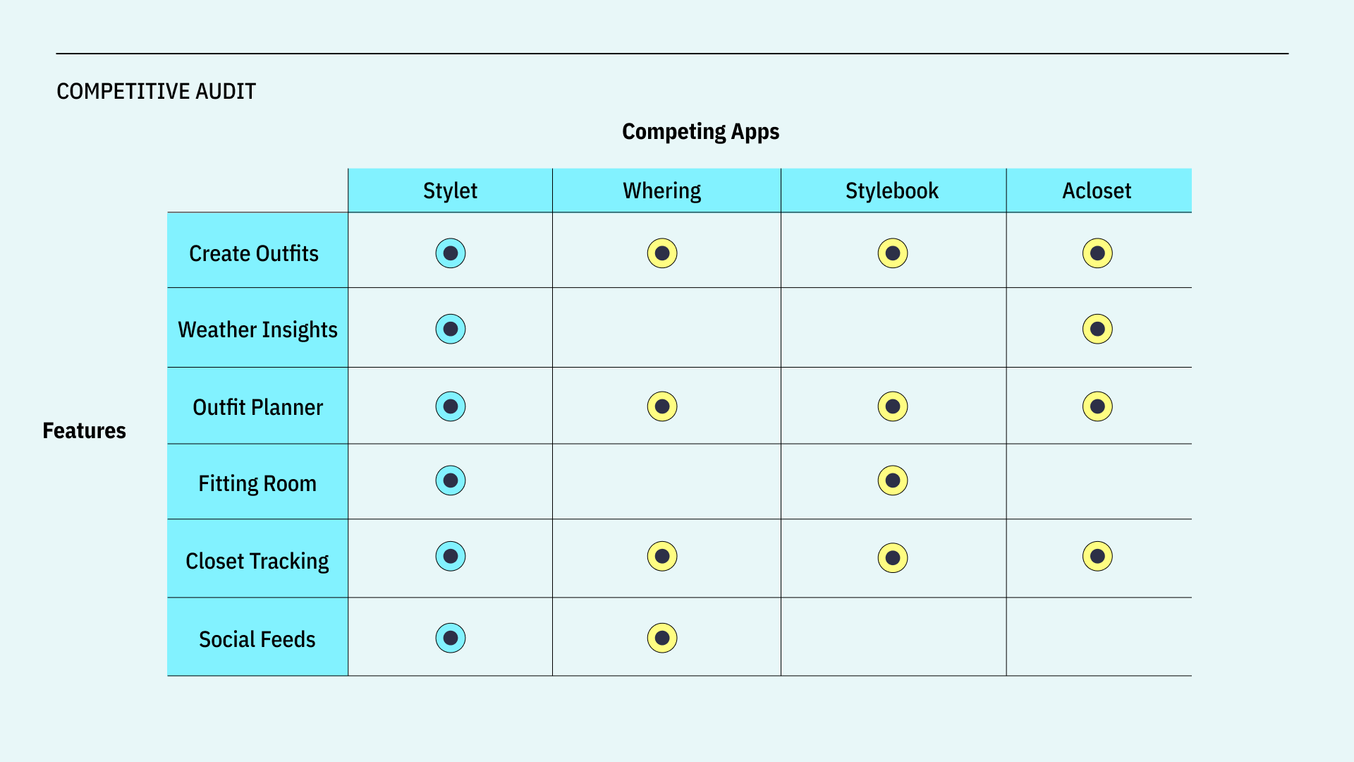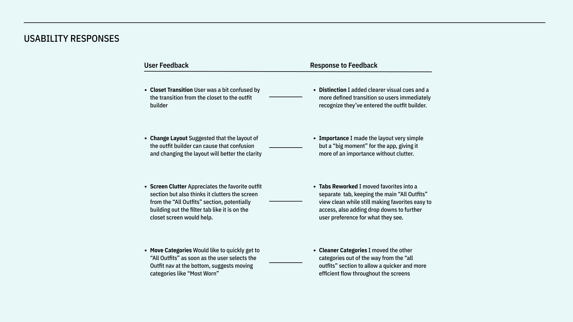 ABOUT Stylet is a digital wardrobe app designed to help users organize, build, and plan outfits with clarity and ease. The project addresses the common frustration of owning plenty of clothes but struggling to visualize cohesive outfits or remember what pieces work well together.